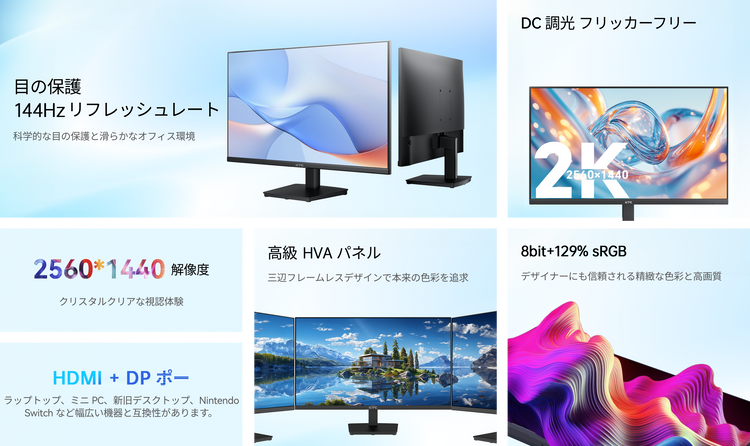 低ブルーライト搭載 27 型 QHD 144Hz